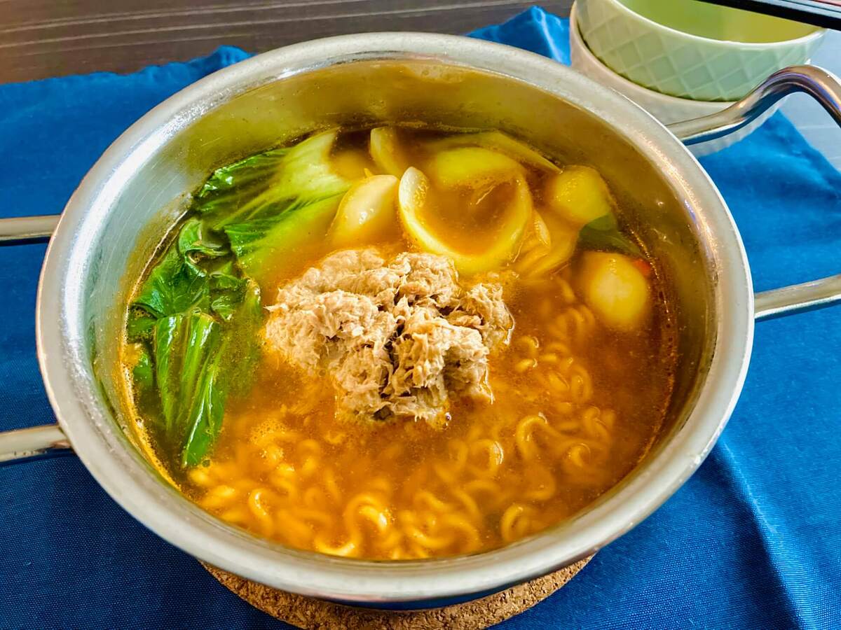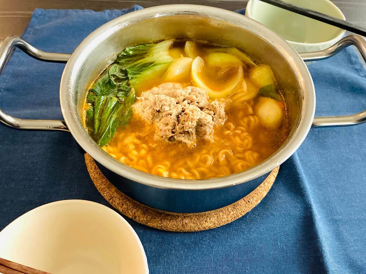 辛ラーメンに缶詰をドボン?