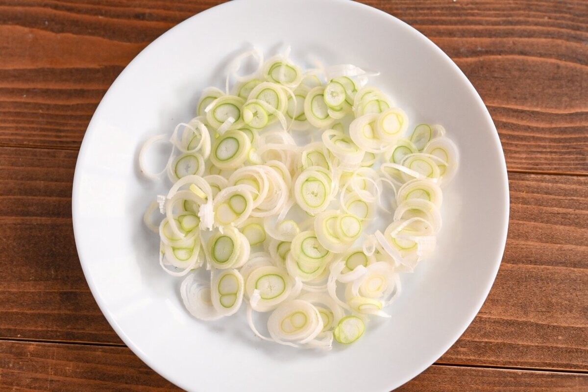 長ネギは薄切りにしましょう。