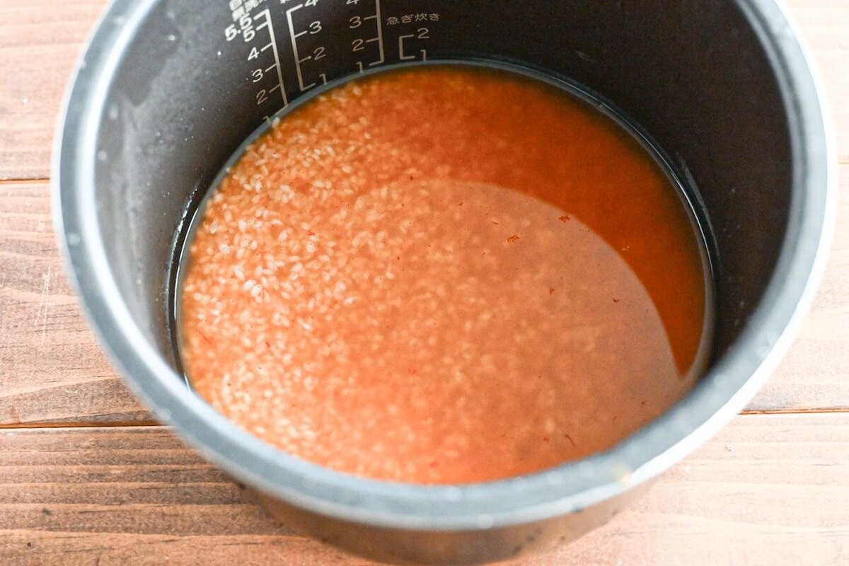 あとは、炊飯器の目盛りまで水を入れて、軽く混ぜましょう。