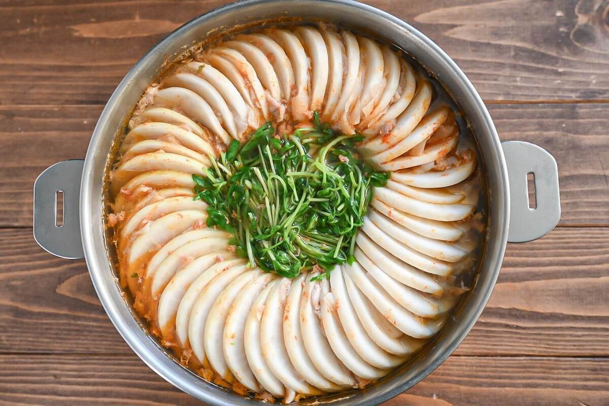 大根が安く手に入る、今の旬の季節にぴったりな「大根ミルフィーユキムチ鍋」。