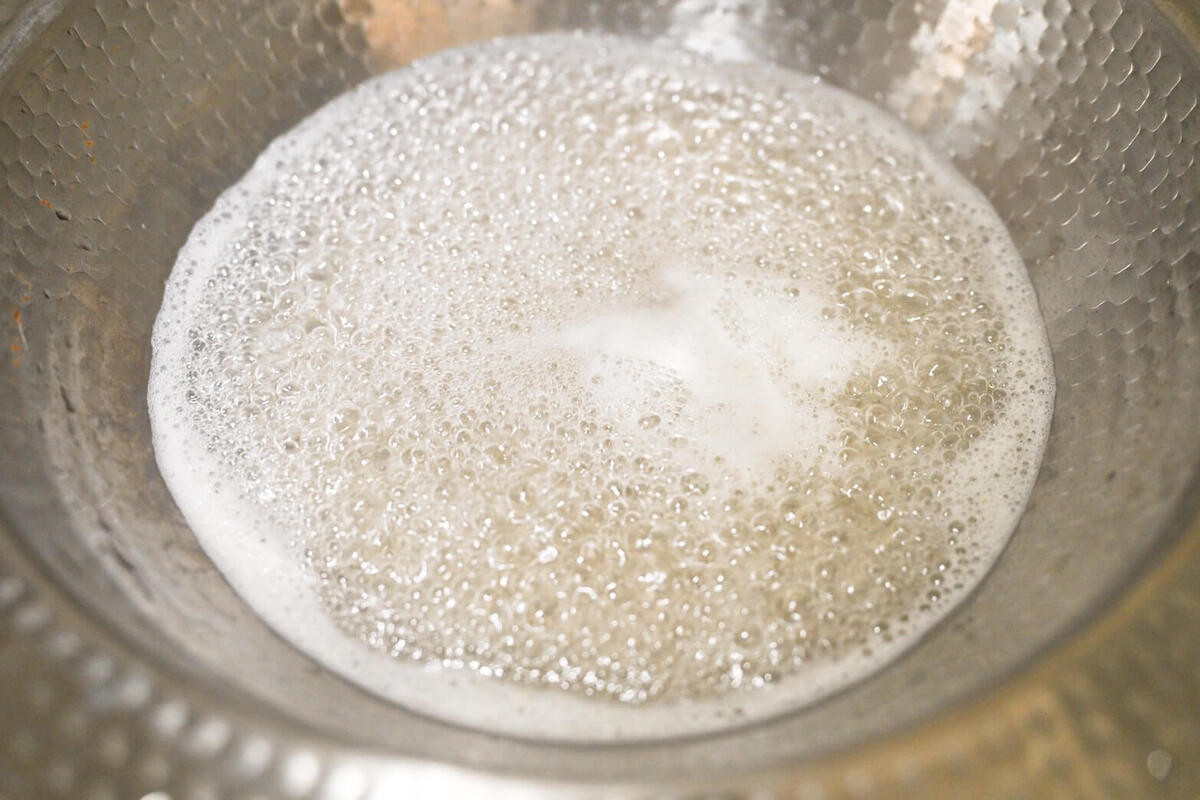 鍋に水、白だし、おろしにんにくを入れて強火で煮立てます。