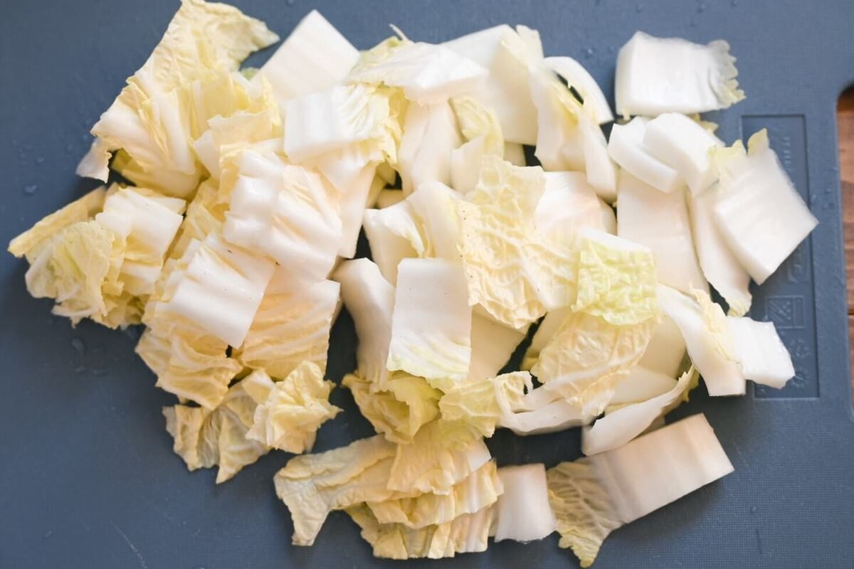 白菜、冷凍餃子を加えて中火で7分程煮て火を通します。