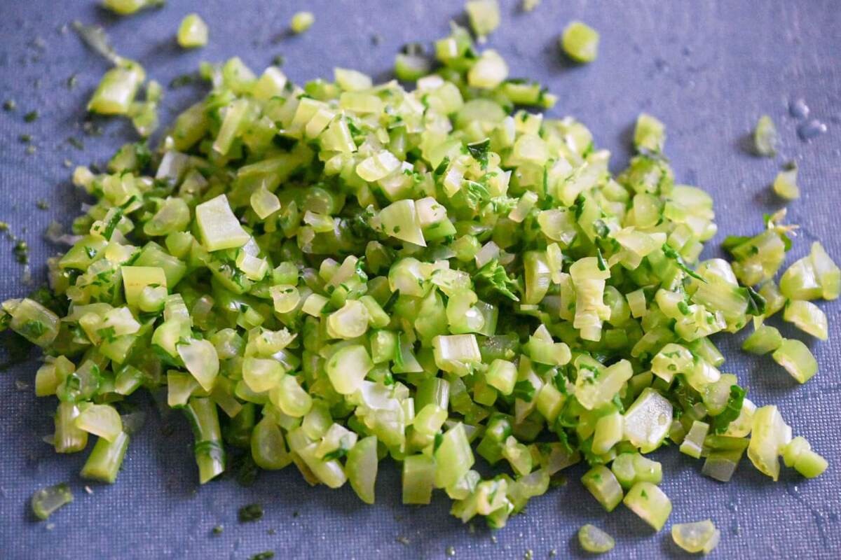 大根の葉もゆでて、みじん切りにしておきます。