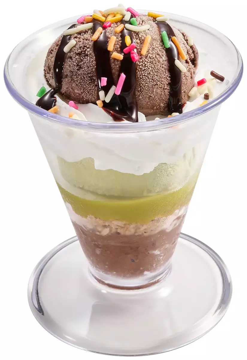 新作「ドバイチョコ風サクッとパフェ」は、濃厚なピスタチオソースとアイスに、フィアンティーヌのザクザク食感を合わせた贅沢な一杯です。