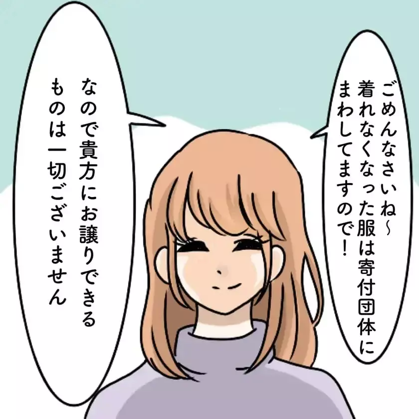 図々しすぎる要求にさすがにイラっときたしろみさんのお母さん、「お譲りできるものは一切ございません」とキッパリお断り。かっこいい!