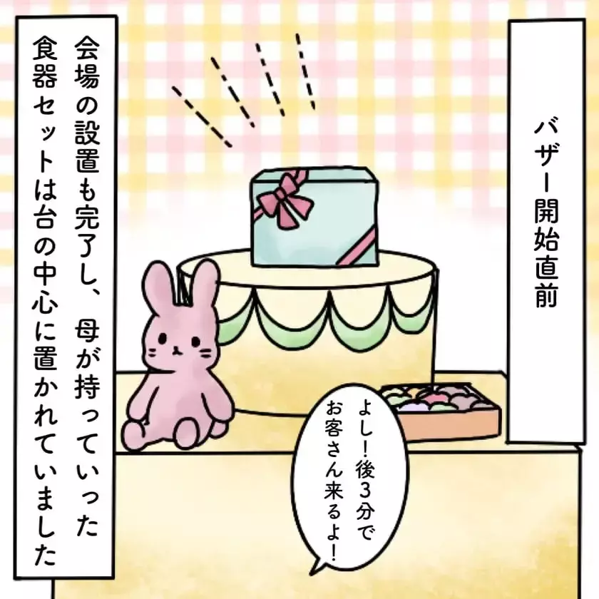 しろみさんの小学校のバザーでは、役員が品物を持ち寄る決まりでした。 そこで、しろみさんのお母さんは「ブランドものの食器セット」を出品することに。