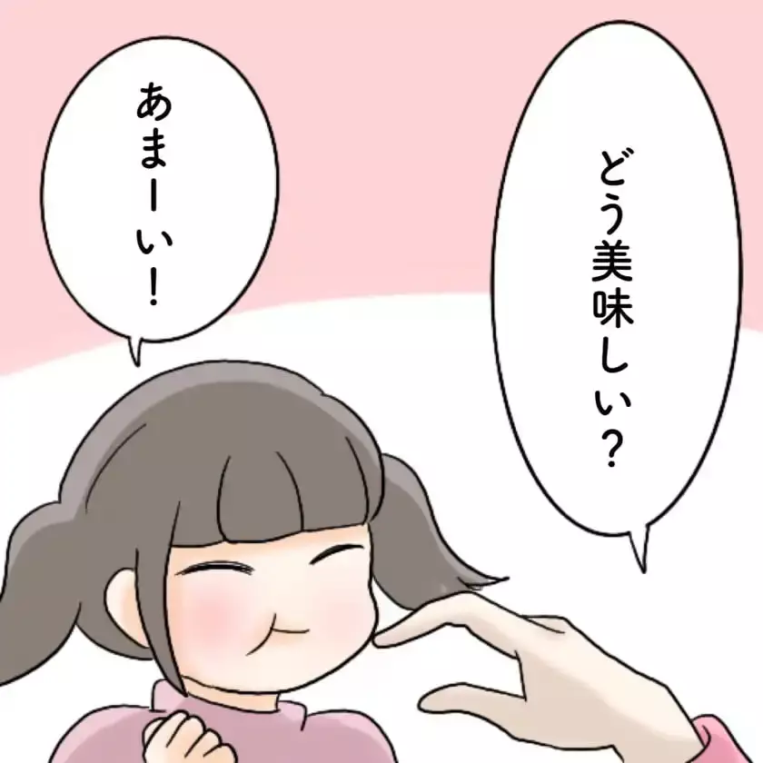 そしてケーキに目をつけると、なんとうさぎのチョコレートを摘み、娘のマミちゃんの口の中へ。