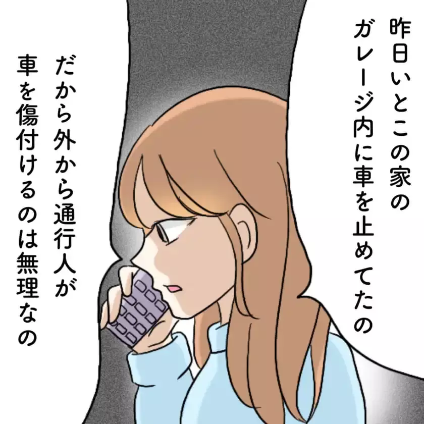 ガレージ内に車を停めていたため、犯人はその日家を訪れたアカリさんの可能性が高いと思われますが、実際にその場を見ていたわけではなく、証拠がない以上、これ以上の追及もできません。あぁ〜悔しい……(泣)!!