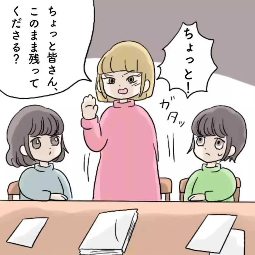 PTAの集まりの後、ママ友がみんなを呼び止めて…