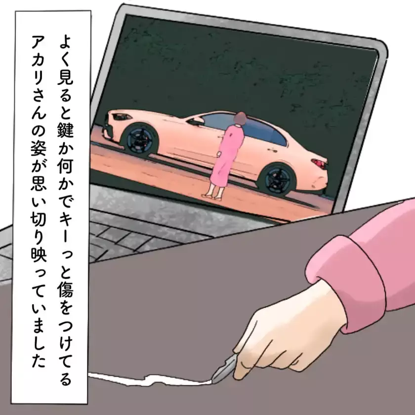 愛車に傷をつけられたこと、そしてその犯人がアカリさんだったことを、証拠とともに暴露!