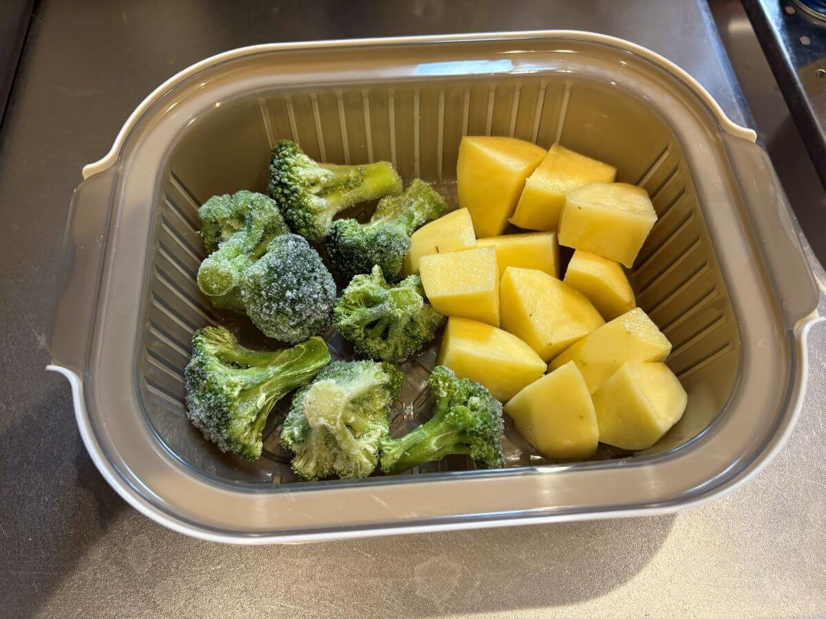 さらに、フタをすればそのまま冷蔵庫で保存でき、ザルとしても使える便利な仕様。加熱時間は説明書に記載されているため、目安にしながら足りない場合は10秒ずつ追加するのがおすすめです。