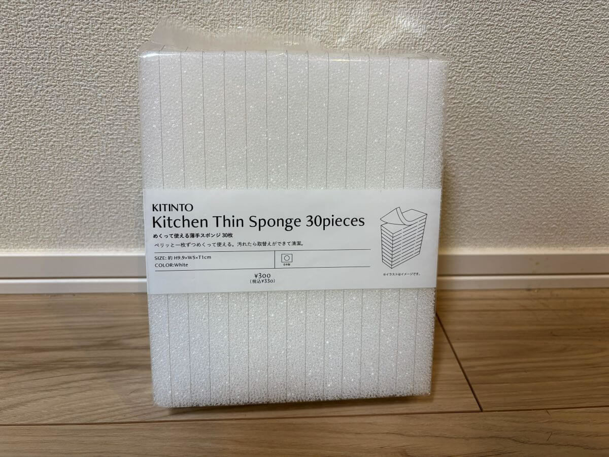 3つ目は、3COINSの「めくって使える薄手スポンジ」です。
