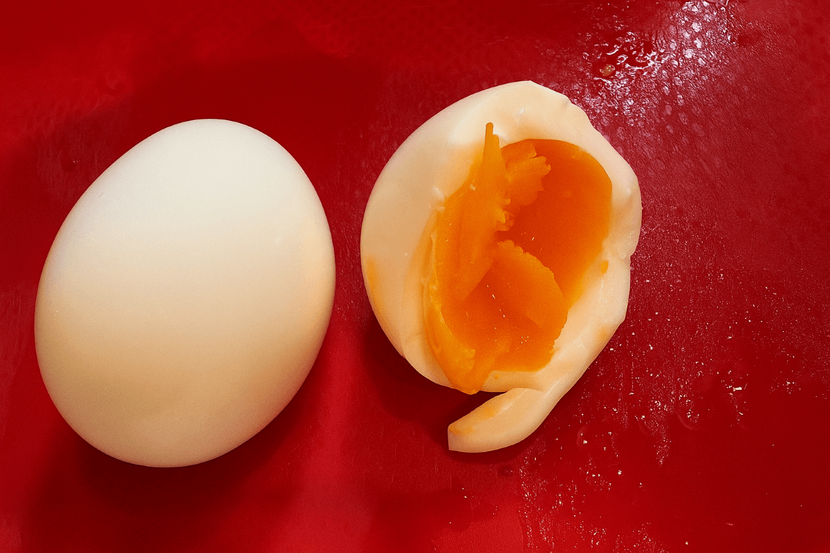実際に試してみたところ、電子レンジで5分加熱+5分予熱するだけで、黄身がほどよくとろっとした理想の半熟卵が完成しました。殻もつるんと剥けてストレスなし。
