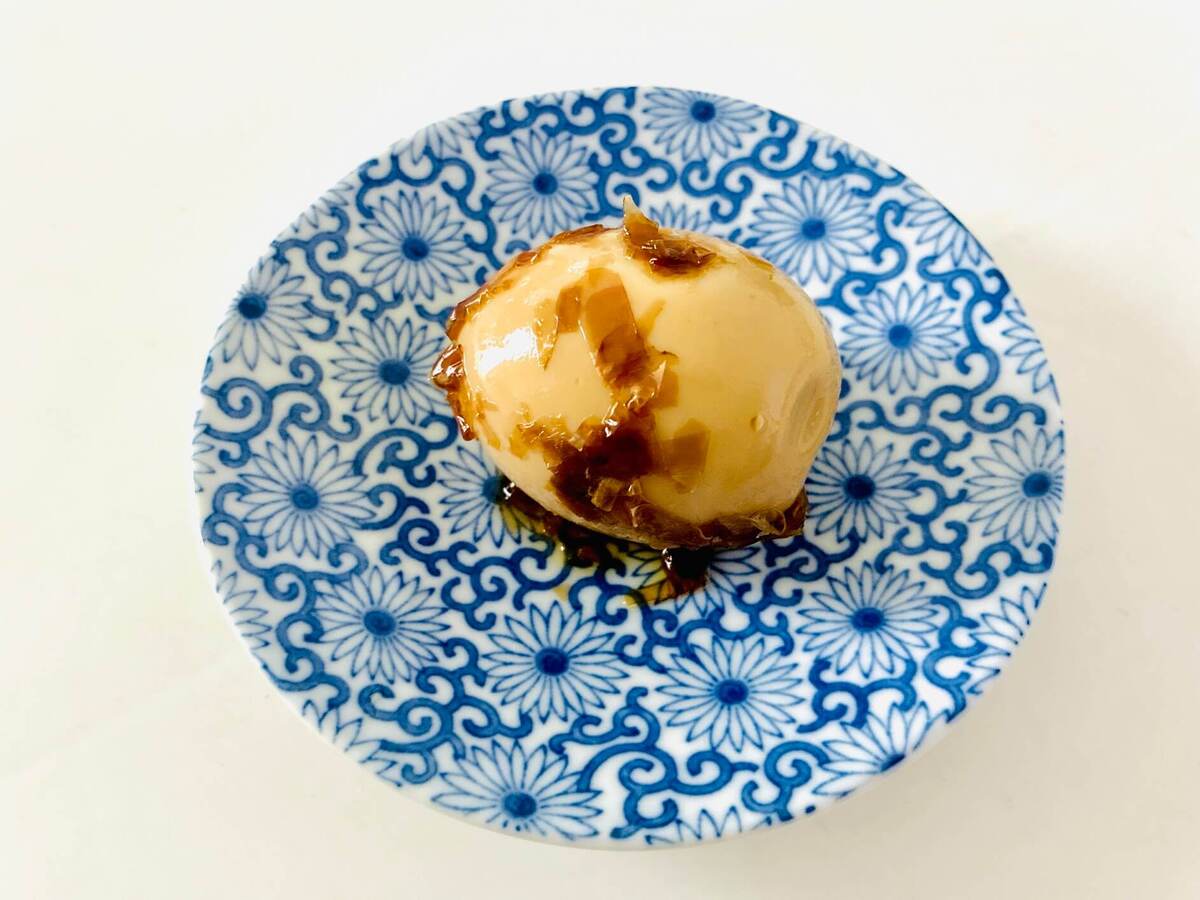 削り節から出たうま味たっぷりの甘辛漬け汁が黄身までしっかりとしみ、ねっとり濃厚で至福♡