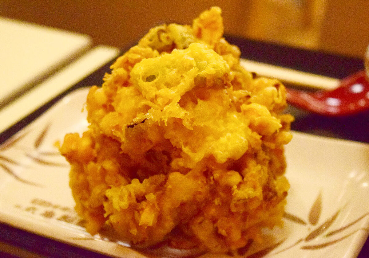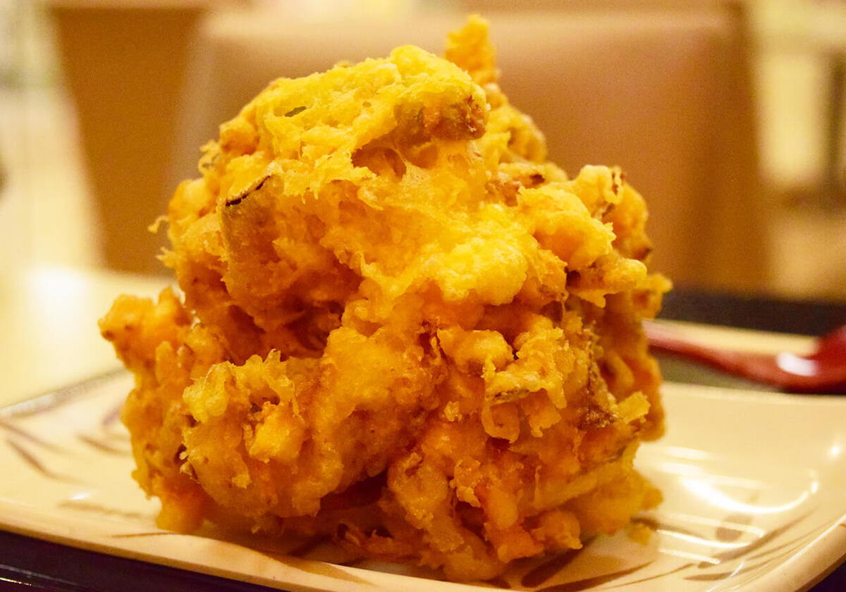 それにしても、ずいぶんと山盛りなかき揚げですね。お腹にずっしりときそう……。