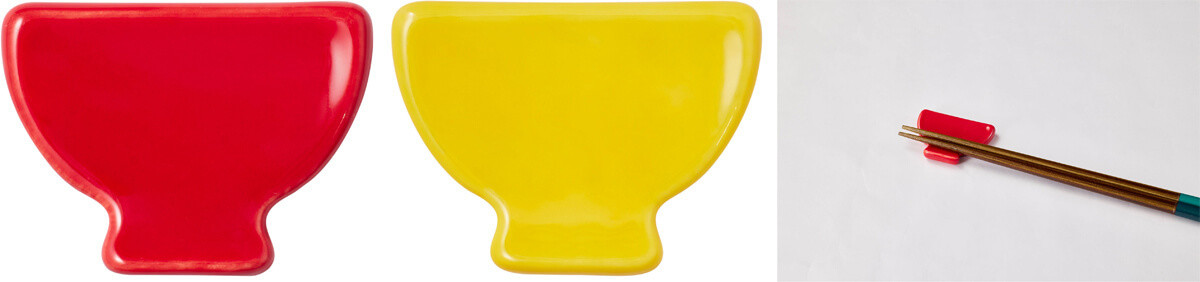 すき家のロゴカラーをあしらった、どんぶり型の箸置きです。少し大きめのサイズで、お箸に加え、セットの木製スプーンも置くことができます。2個セットのため、ご家族やご友人と一緒にお使いいただけます。