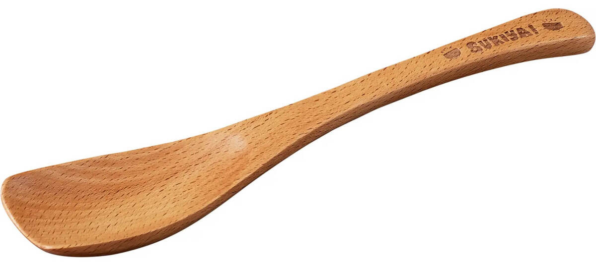 天然のブナの木を使った、口当たりが滑らかなスプーンです。さじの部分を四角い形状にすることで、ごはん粒をすくいやすくしました。牛丼やカレーをはじめ、さまざまな料理を食べる際にマルチに活躍します。