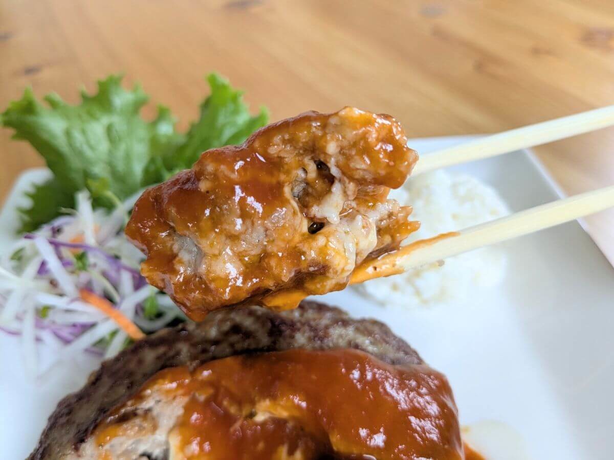 ナイフを入れた瞬間、とろ〜りとあふれるチーズ。トマトソースのほどよい酸味がチーズのコクと肉の旨味を引き立て、まさにジョイフルの味。チーズもたっぷりで、最後の一口まで濃厚です。