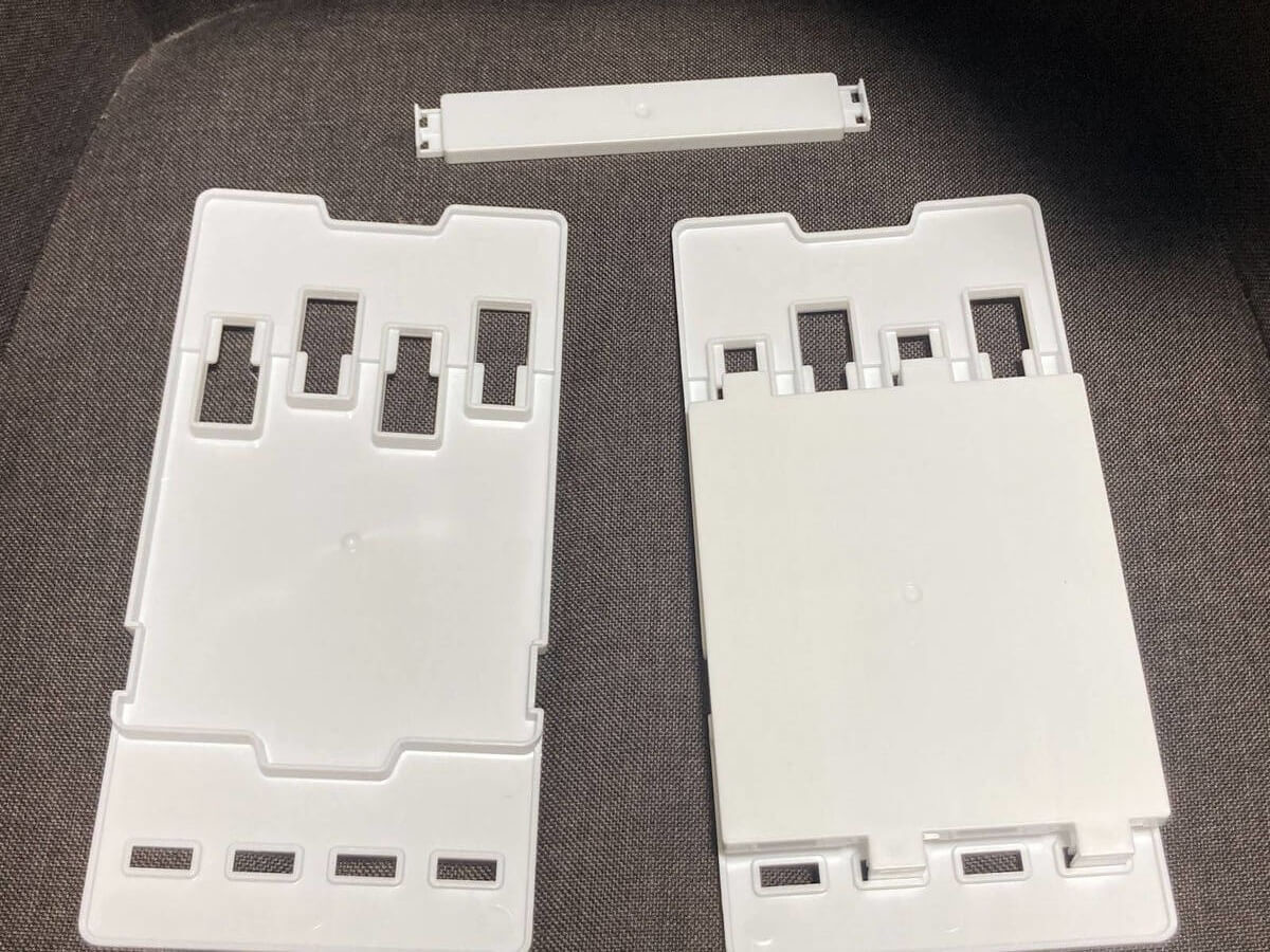 パーツは4つだけのシンプルな構成。厚みもないため、使わないときは重ねて保管しやすいのがメリットです。
