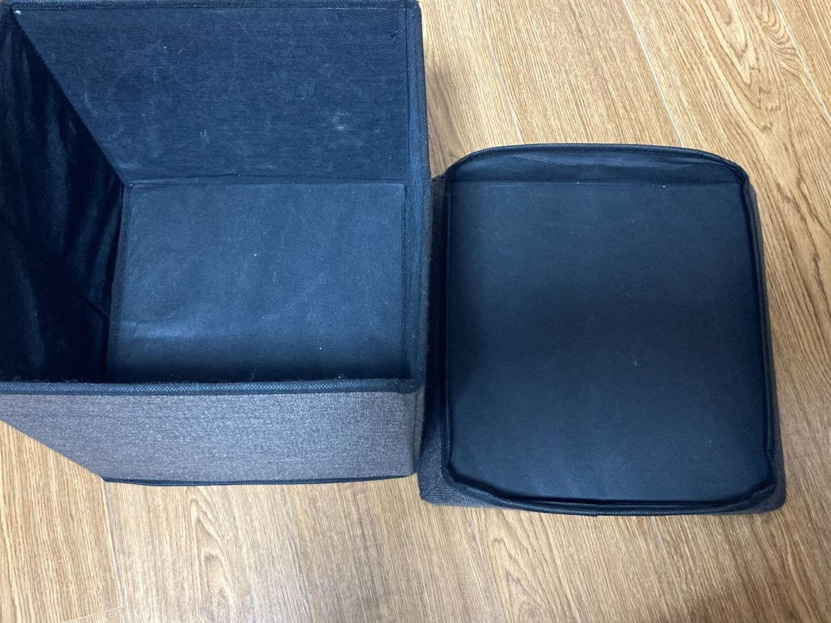パッと見だとちょっとおしゃれなスツールにしか見えませんが、実は中が収納スペースになっているのが特徴です。広々としているため、おもちゃや日用品など色々なモノを収納しておけます。