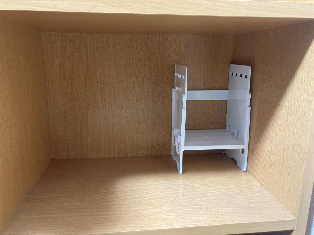 こんな便利な収納グッズが110円だなんて、さすがダイソーです。 少し不満点があるとすれば、見た目のデザインが安っぽい部分ですが、本を置くとほとんど見えなくなるのであまり気にしなくてもよいでしょう。