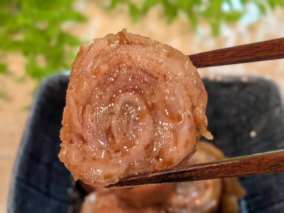 豚肉同士はしっかりまとまっているのに、噛むとホロッとほどける食感もイイ!