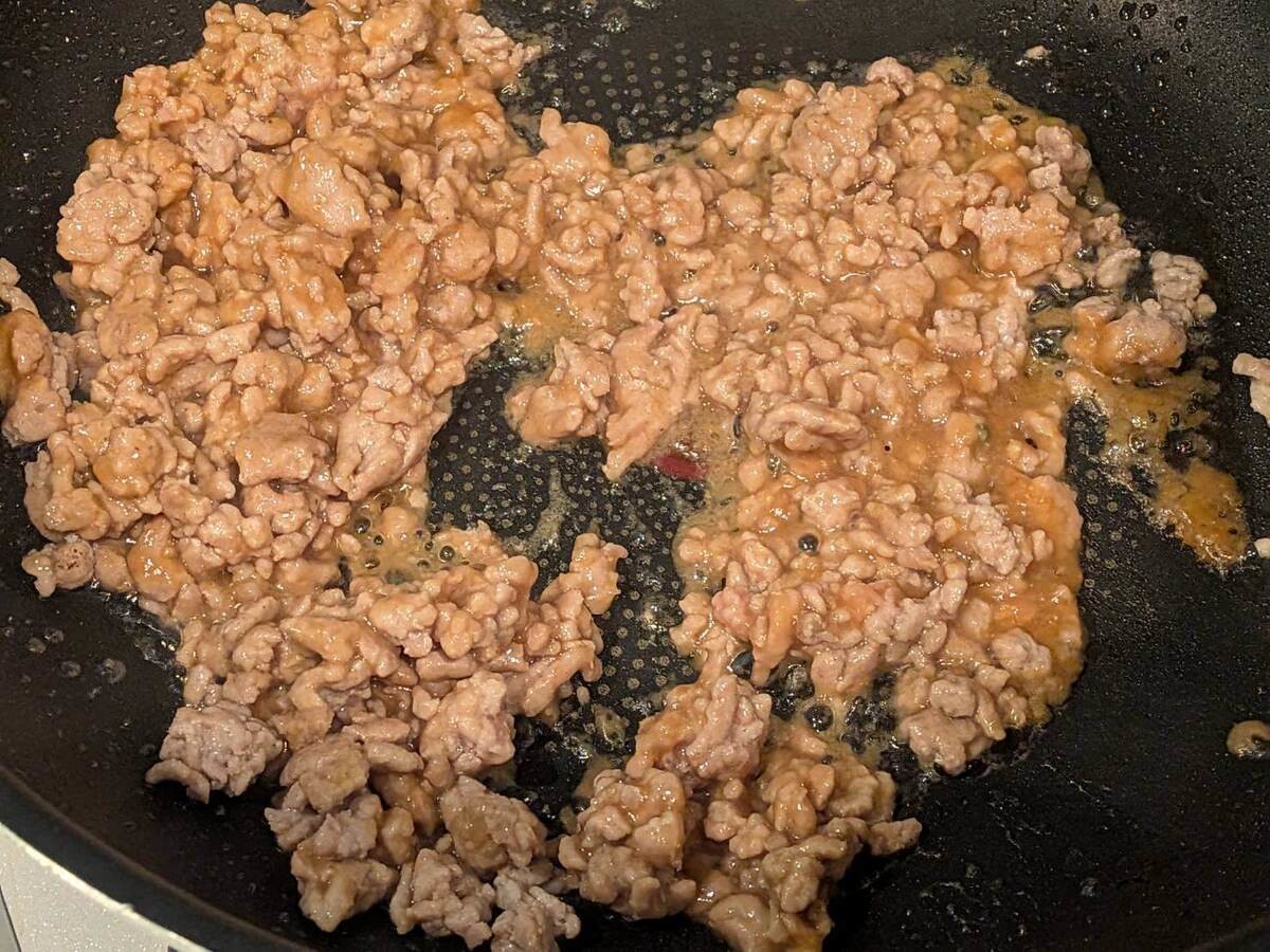 豚ひき肉からも脂が出てくるので、油はひかなくてOK!ワンパンで調理がすすむのも嬉しいですね(ズボラ魂)♪
