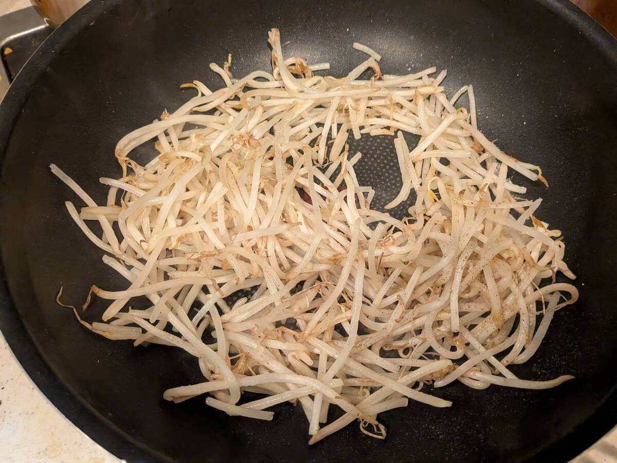 もやしを炒める工程では、火を通しすぎないのがポイント。