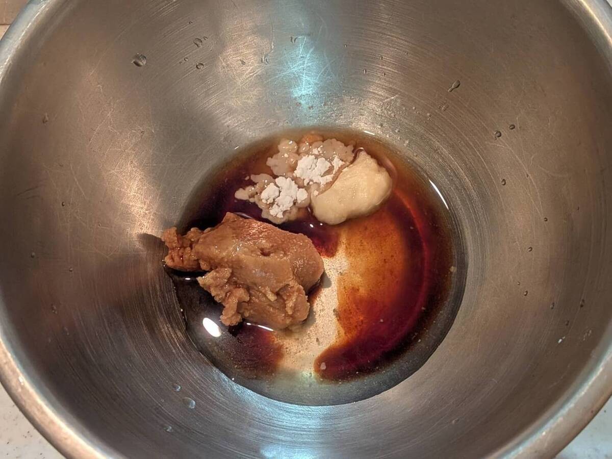 ボウルに【A】の材料を入れ、味噌がしっかり溶けるように混ぜます。