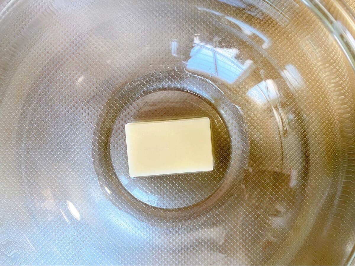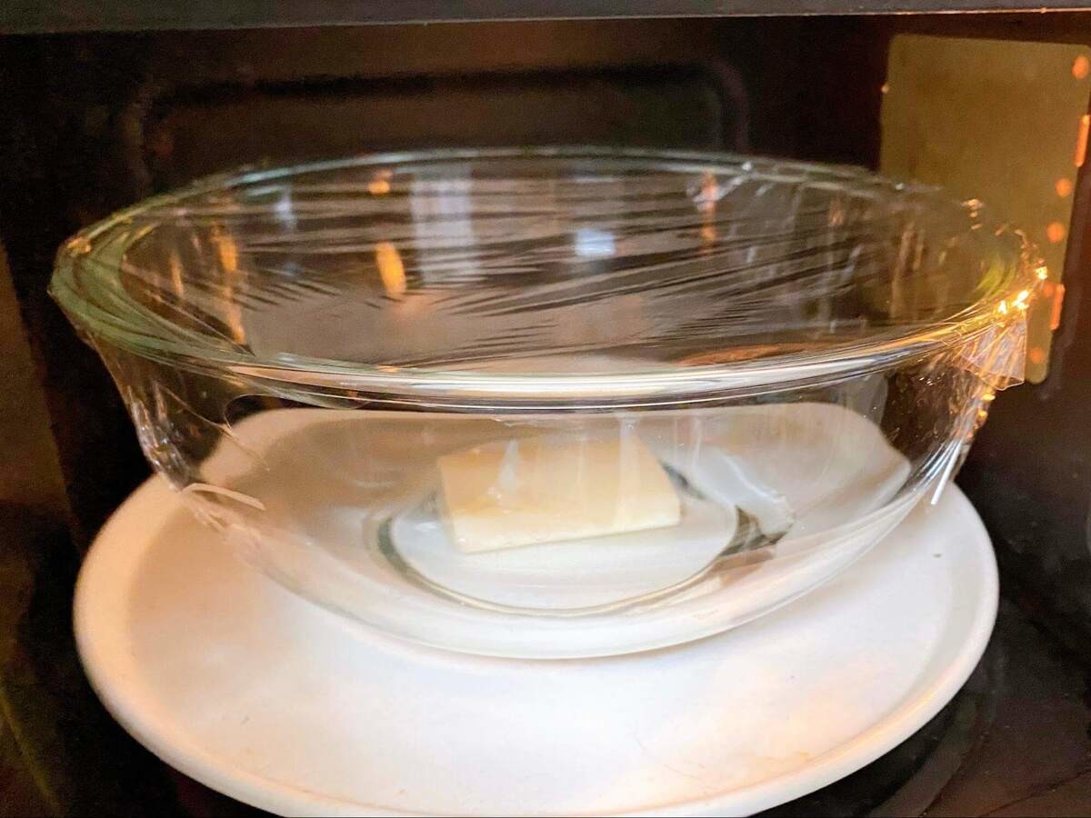ラップをかけて、電子レンジ600Wで2分加熱。我が家の電子レンジは500Wなので、2分で様子を見て30秒追加しました。