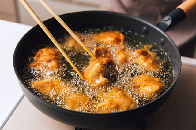 ただ、家庭で揚げる際は鍋の大きさが小さく、油量も少ないため、肉を入れたタイミングで一気に温度が下がってしまうなど170℃を維持するのが難しい場合も……。