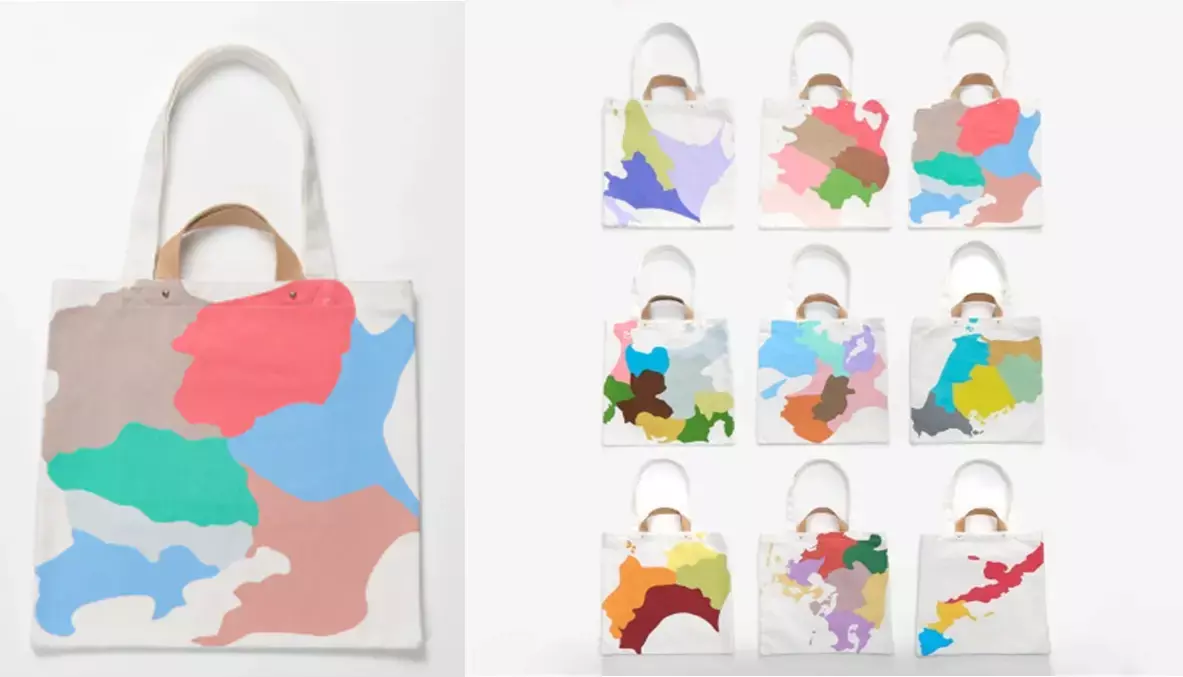 北海道、東北、関東、中部、近畿、中国、四国、九州、沖縄の9つの地方からお選びいただけます。スクエアトートバッグを含む総額約\11,000(税込)相当の地図柄アイテムが入っています。