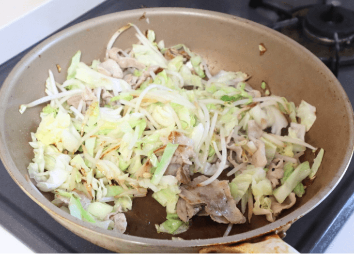 香ばしく仕上がるように、中火〜やや強めの火力で、豚肉やキャベツに焼き色がつくまでしっかりと炒めましょう。
