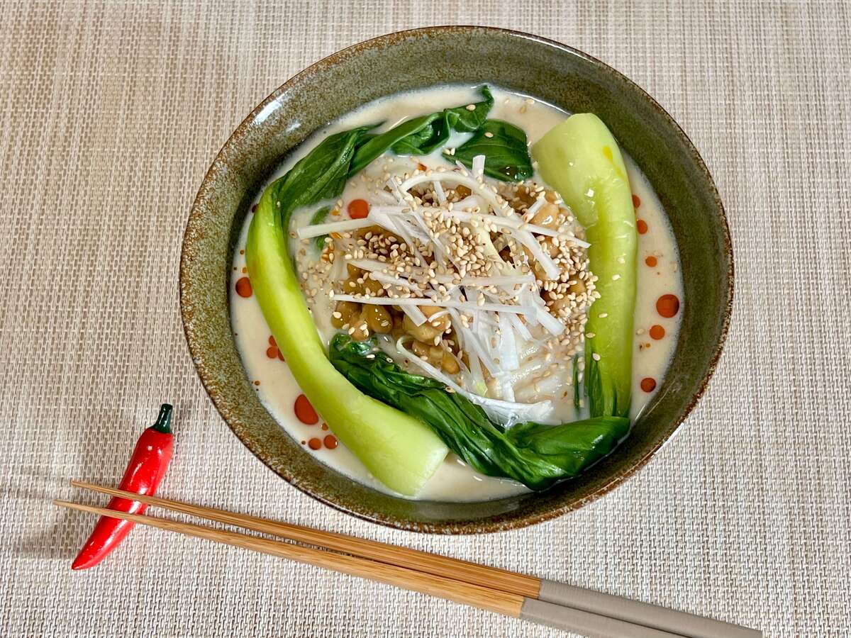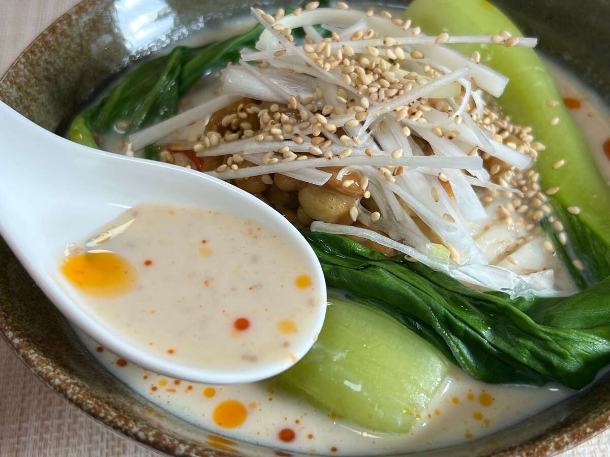 豆乳ベースの担々スープが美味〜!納豆で新たな美味しさ発見♡