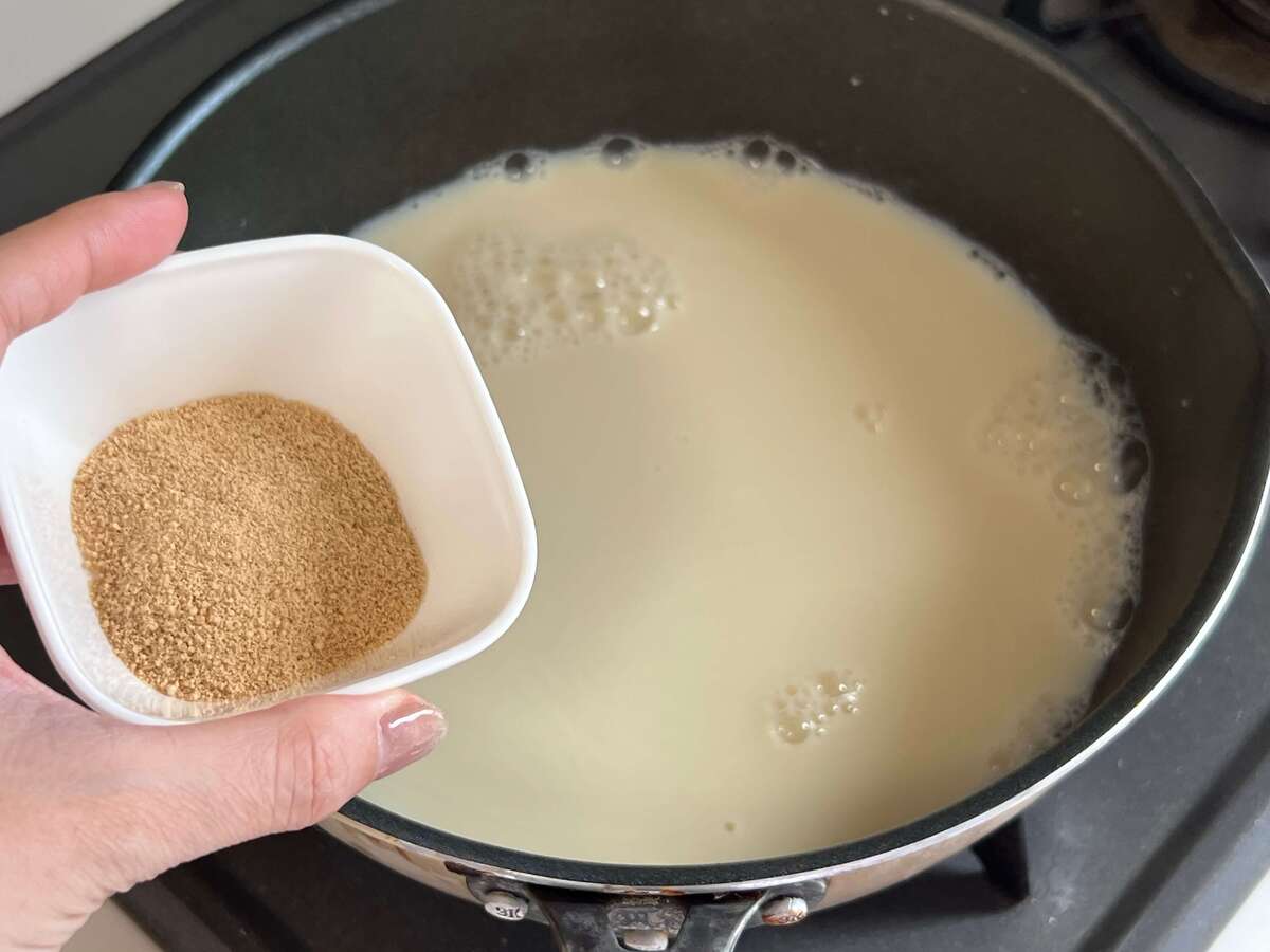 豆乳は沸騰してブワッと吹きこぼれやすいので、沸騰しないようによく見ておくのがポイント ♪
