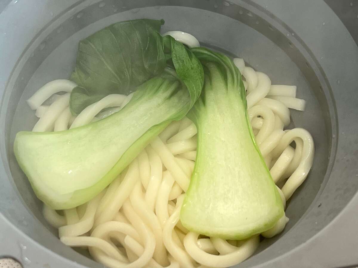 作り方②うどんとチンゲン菜を茹でる