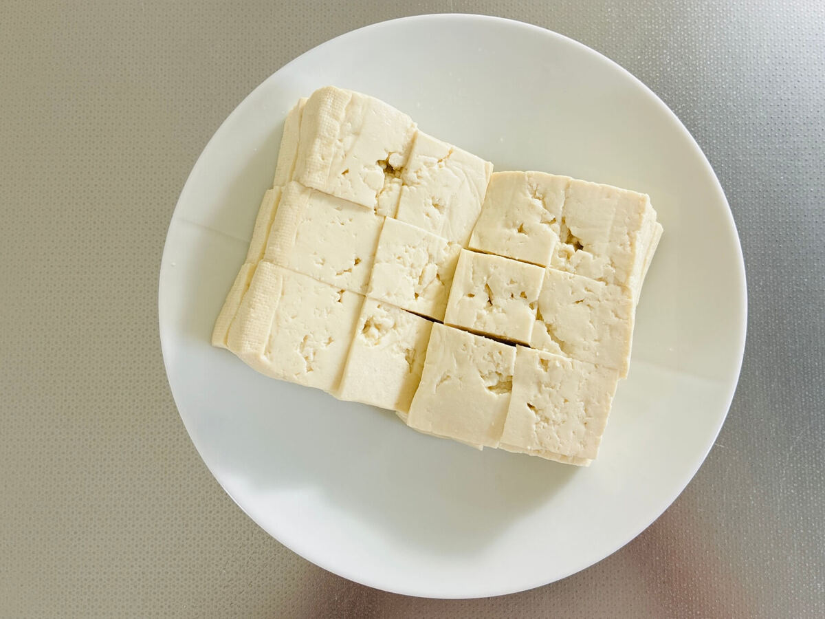 ①の豆腐を2~3cm角に切ります。