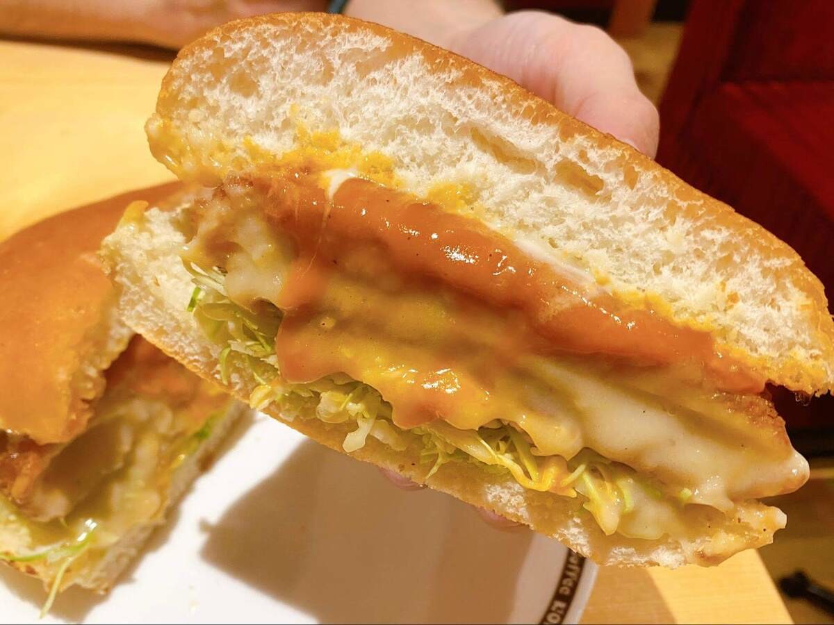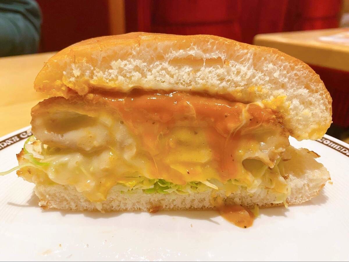 過去の記憶を遡っても、ここまで流れ出るようなホワイトソースが入ったバーガーはなかった気がします。