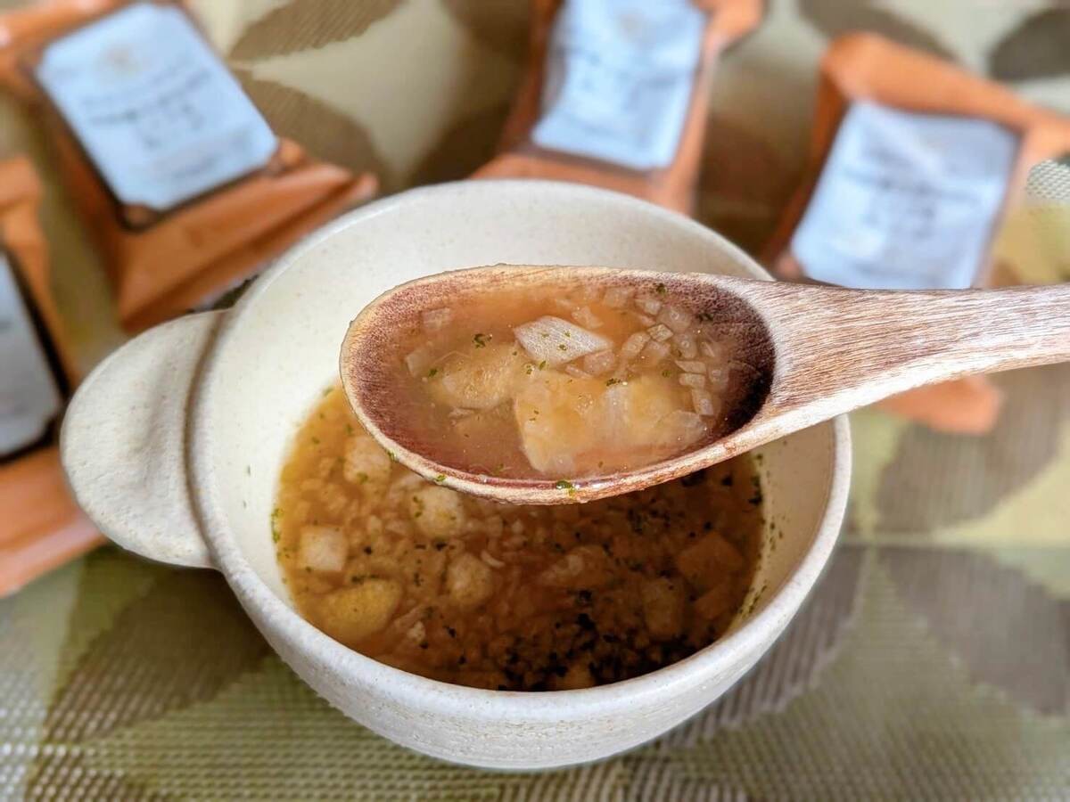 久世福の超人気「野菜だし」をベースに、淡路島産たまねぎが使われたフリーズドライのスープ。