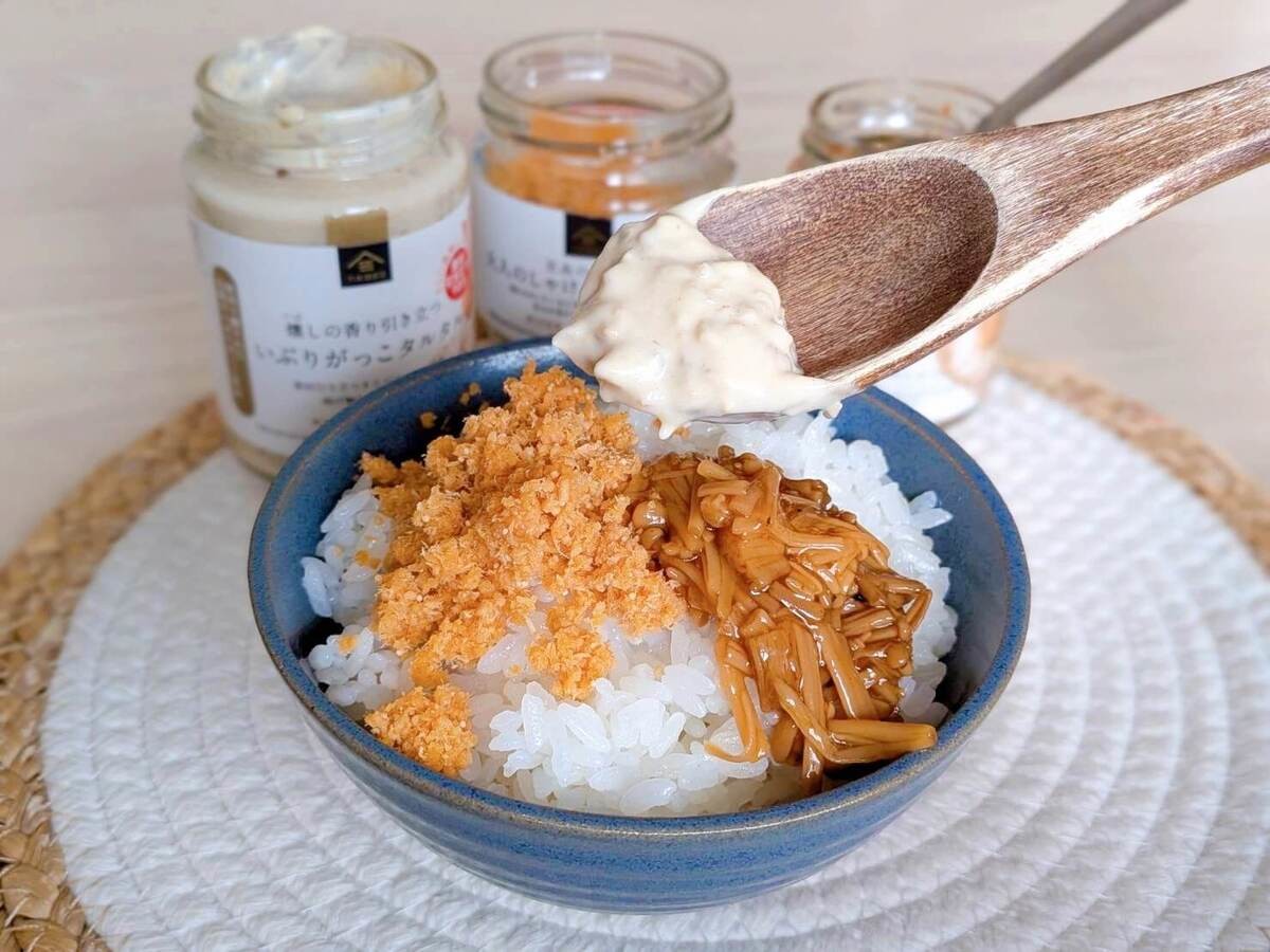 いぶりがっこタルタルはいろいろなメーカーから出ていますが、久世福のものは、なんと上でも紹介した「万能だし」が入っているんです。より和風のおかずや白ご飯と合わせやすい!さすが久世福人気No.1商品。