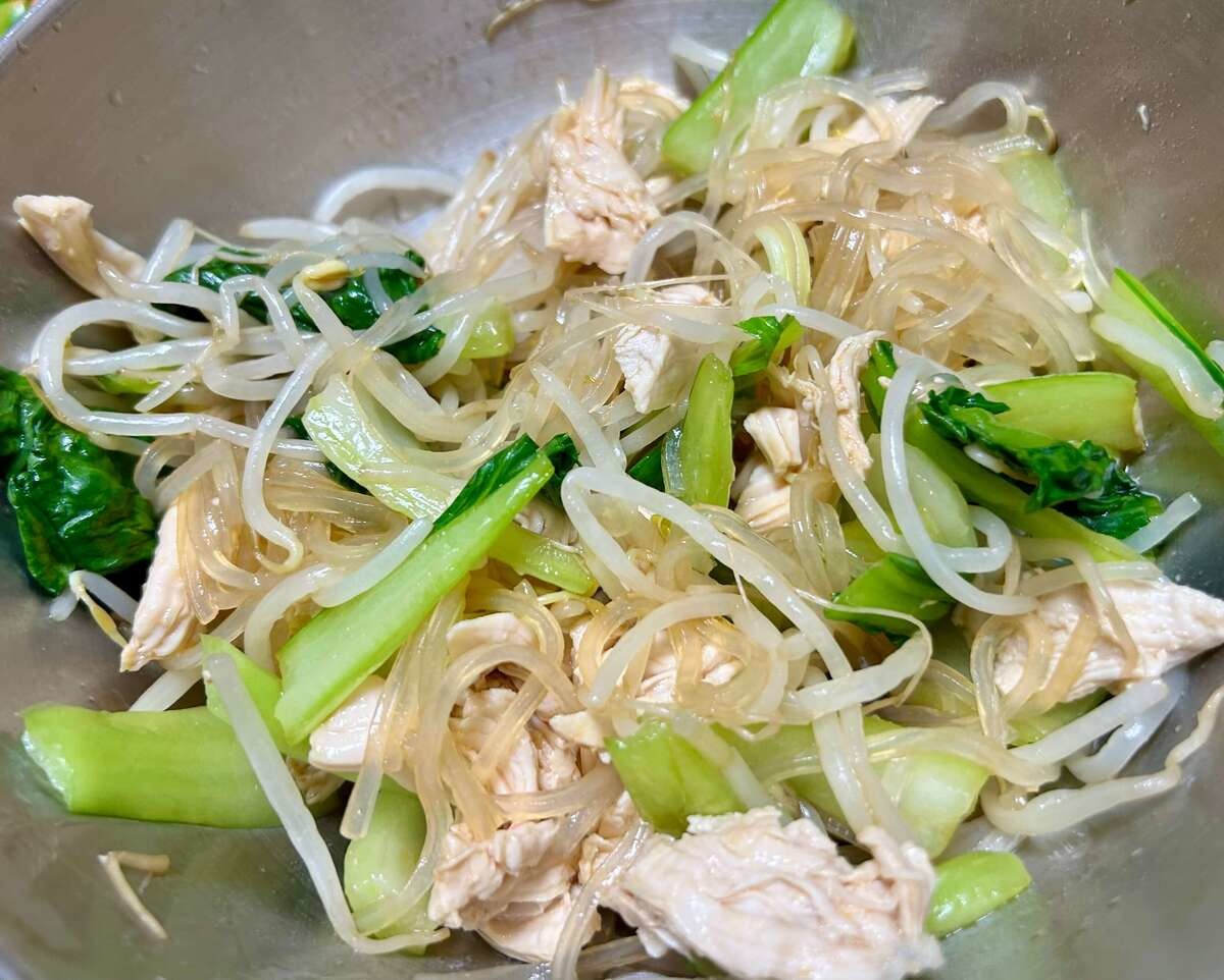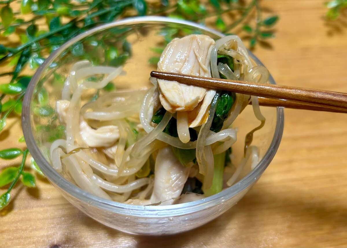 チンゲン菜やもやしからはシャキッとした食感を、マロニーからはつるんとした喉越しと弾力を。ささみからはさっぱりした上品な旨みを感じられます。春雨よりも存在感があって、新鮮で美味しい!