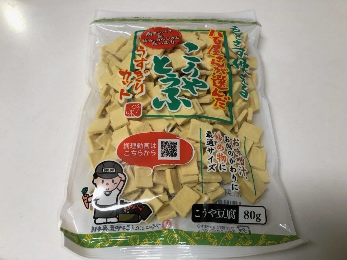 これは私以上に業務スーパーを愛用しているお義母さんに教えてもらった商品で80gと聞いて数字だけ聞くと少なく感じるかもしれませんが、商品を見てびっくりうすぎりにカットされたこうや豆腐がたっぷり入ったコスパ抜群の商品です。