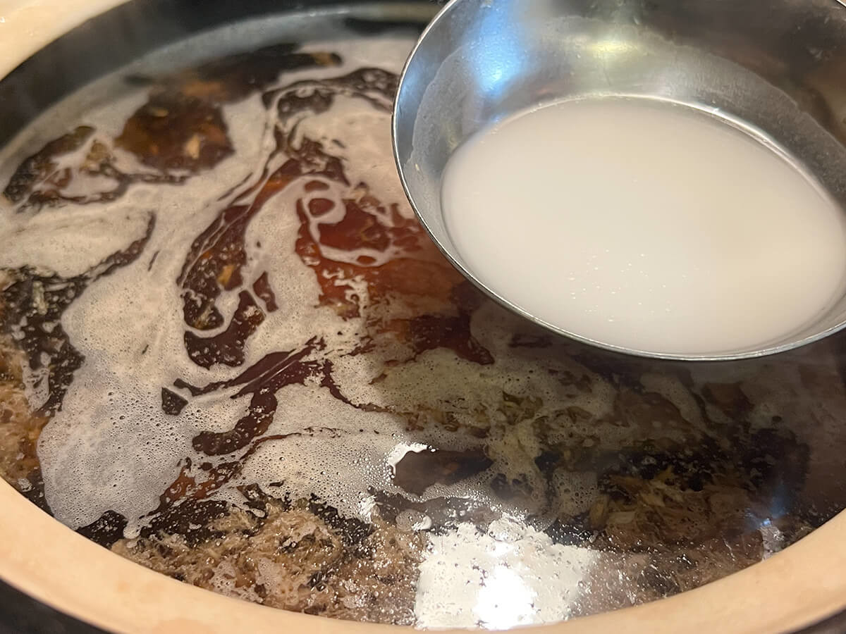 今回は水大さじ3に片栗粉大さじ1.5を溶かしたくらいのものを全量入れてみました。写真で伝わるかどうか、と思いますが、こんな感じかな、という印象だったので、よしとしました。