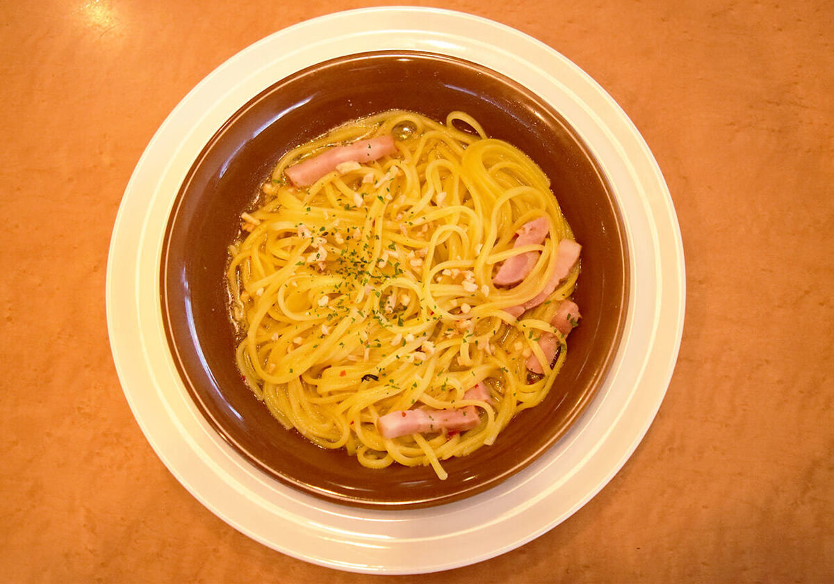 もっちりと弾力のあるパスタに、ガーリックオイルの香りが広がる、奥深い味わいが特徴の一品です。店舗によっては、クーポンを利用するとワンコイン以下で楽しめるため、とてもお得に感じます。