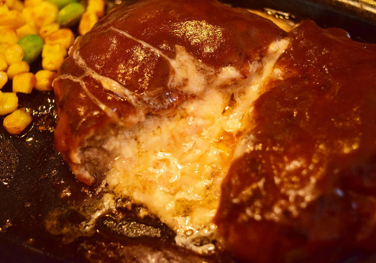今回、実物を初めて見ましたが、想像していたよりもハンバーグは大きめでした。やわらかめの食感で、箸でも簡単にカットできるため、子どもでも食べやすいと思います。