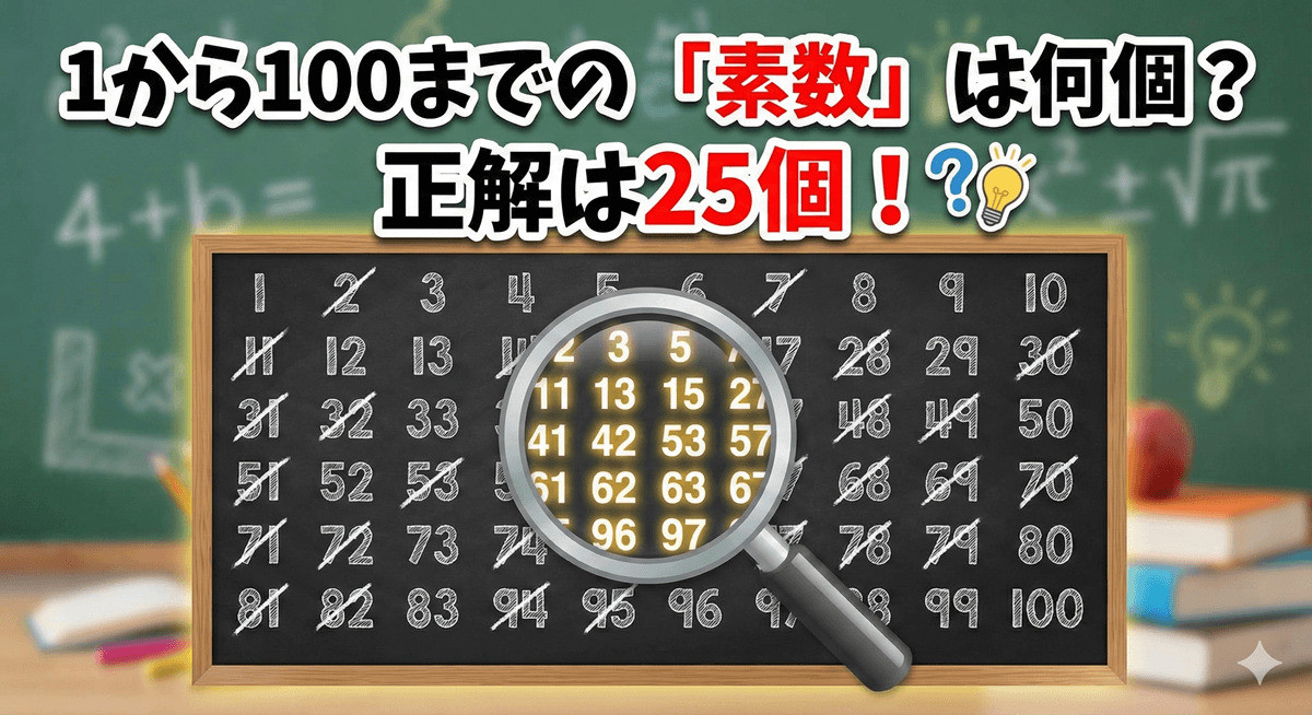 「1」と「その数自身」しか約数を持たない孤独な数字「素数」。では、1から100までの間に素数は全部で何個あるでしょうか?