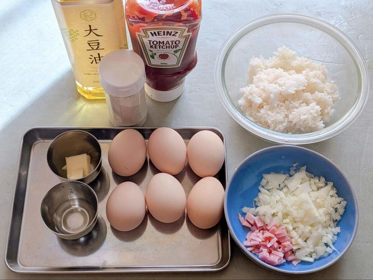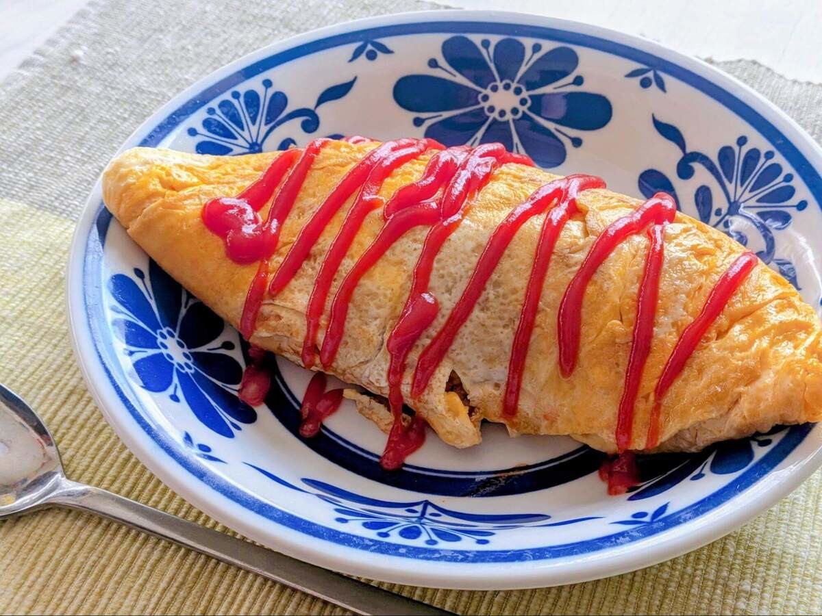 最後にトマトケチャップをかけたらできあがり!複数人分作る場合は、作り方⑤から再度卵を焼いて同様に作ってくださいね。