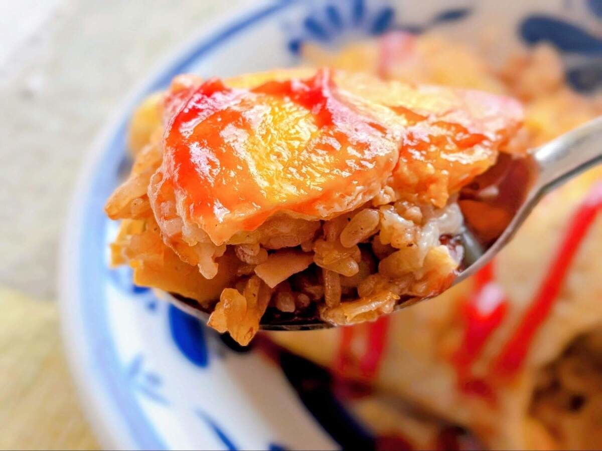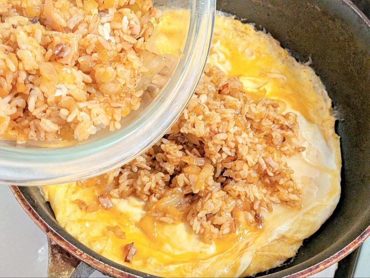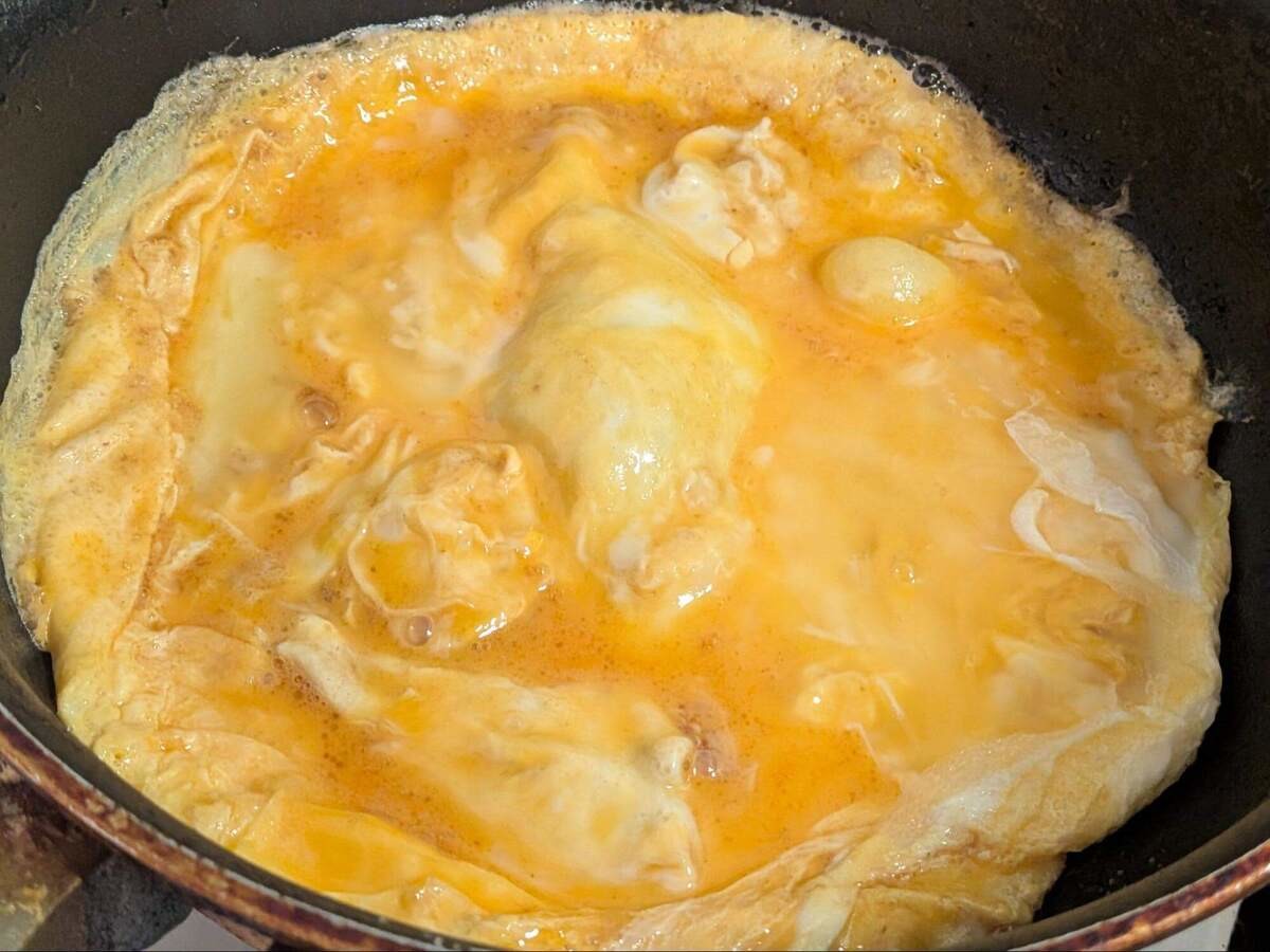 今までは焼いた卵をのせるだけになることが多かったのですが、下にも卵が回っているので、どこを食べても卵のやさしい甘みが続きます。