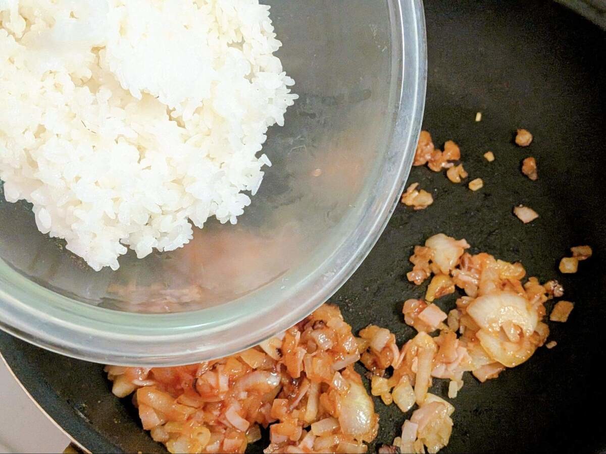 作り方③ご飯を加える