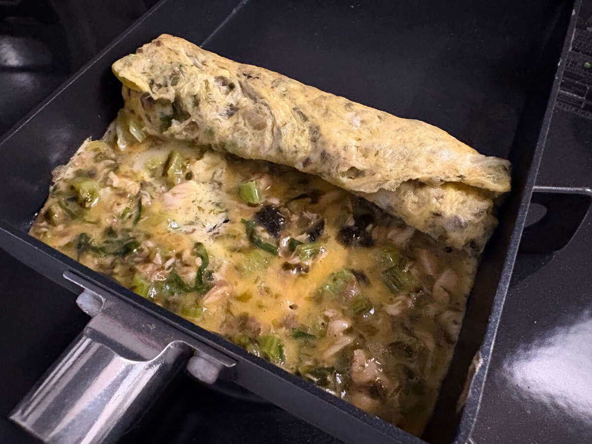 こんなに具材が入ったら巻きにくいかなと心配でしたが、卵にしっかりとからまって崩れることなく焼き上がりました!